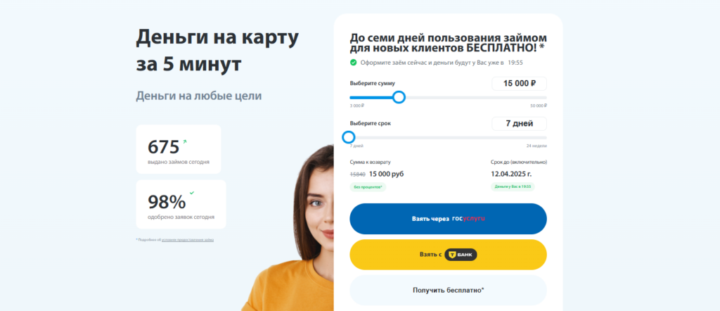 Сервис доступен круглосуточно, что делает его удобным для заемщиков.